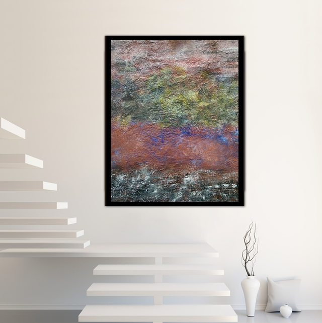 Automne, châssis 70x70, peinture acrylique à effets. Œuvre unique signée, vernie, numérotée, avec certificat d' authenticité.